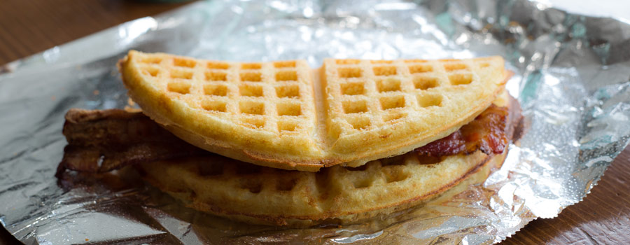 The biggest surprise at the top is Corbet’s Cabin where they make some of the best waffles in the area. Not a traditional waffle, they serve them sandwich style, where you can mix and match all different types of fillings. Corbet’s Cabin also serves great hot and cold beverages that can complement any waffle you create. We grabbed our waffles and hot cider and chose to go sit outside at the top of the stairs where you can watch the paragliders take off.