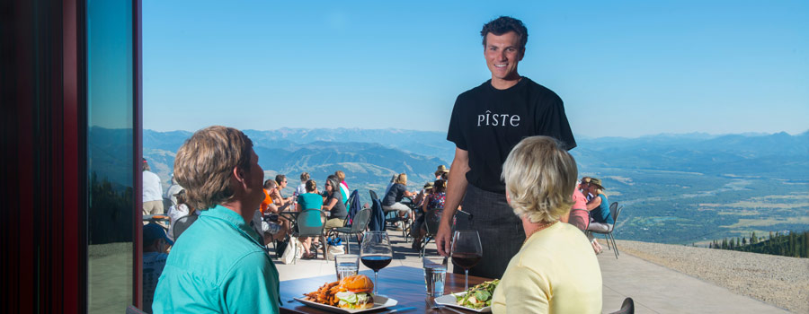 Throwing, jumping, and climbing can build up an appetite. One of the best restaurants with a view is Piste, located at the top of the Bridger Gondola. Starting at 5pm the Gondola runs free for guests wanting to either sit out on The Deck for appetizers and drinks or a full-service restaurant inside of Piste. We started out sitting on the Deck for happy hour enjoying drinks while taking in the incredible view and ended up having dinner inside at Piste to toast a very successful day.