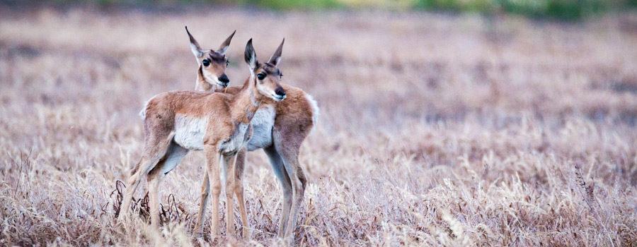 Bison start birthing in late March while Pronghorn, Moose, Elk and other deer all give birth starting in May. Bison newborns are called red dogs because of their fur being a burnt orange red color. They are extremely playful and a real spring delight with their added joy. Elk and Pronghorn females separate from the group to birth, tend and feed there babes for two weeks. After licking all smells from their fawns, they will leave them to hide in the sage and grass for hours while the mothers browse for food. Then, once the new fawns are ready to keep up, they will bring their offspring back to the herd for further safety. Moose mothers, who are generally loners, are particularly protective of their calves and will charge anyone who gets too close while doe elk will also give you signs that you are making them agitated and to not threaten their fawn or else!